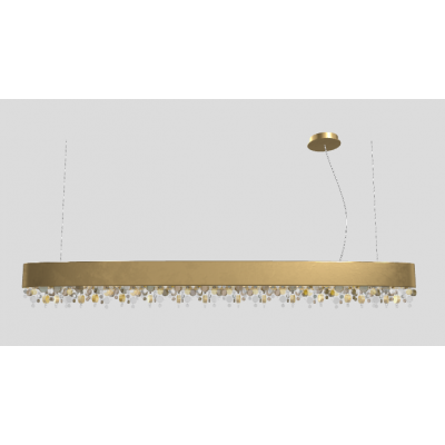 Ola is a jewel of design born from a synthesis of experience and creativity. Designed more than a decade ago by Masiero's creative atelier, the contrast between its simple metal frame and luxurious cascade of pendants makes Ola a Masiero icon. MATERIALS Painted metal structure with pendants LIGHT SOURCE STANDARD LIGHTING: 6 x E14 x 10w DIMENSIONS H 20 cm 7.87'' SP 14 cm 5.50'' L 160 cm 63.00'' THE OLA IS AVAILABLE IN GOLD LEAF, SILVER LEAF OR COPPER LEAF - PLEASE SELECT FORM THE DROP DOWN MENU ON THE RIGHT HAND SIDE
