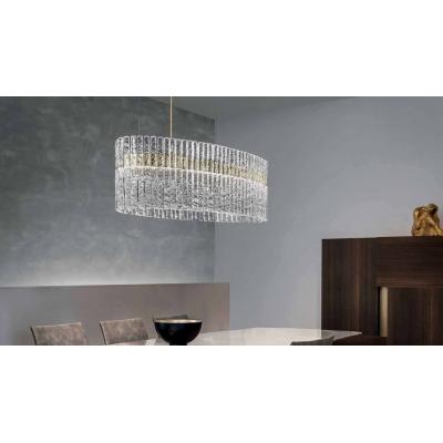 Vegas is loosely inspired by the architecture of Las Vegas, the city that never sleeps. With their classic geometric style, the iconic Art Deco lights are reinterpreted in a contemporary key, combining glass and metal using the most modern manufacturing techniques. MATERIALS Metal structure with rock-crystal effect glass strip diffuser LIGHT SOURCE LEDX67,2W 3000K CRI 95 8806LM DIMMABLE: 0-10V DIMENSIONS H 40 cm 15.74'' SP 48 cm 18.89'' L 120 cm 47.24''