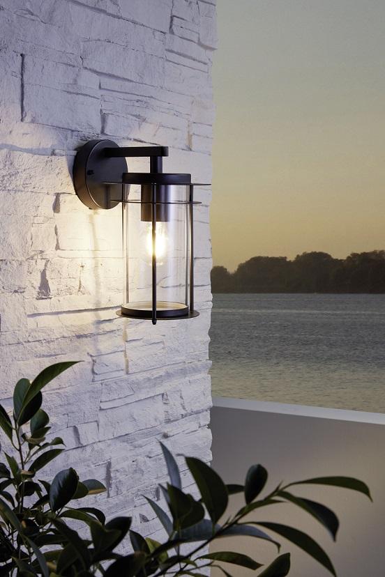 Eglo 96239 Valdeo Black Steel and Glass IP44 Wall Light