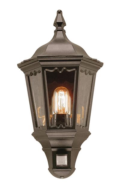Elstead Exterior Medstead Half Lantern with PIR.Medstead PIR half. MD7PIRBLACK. 1 x 100W E27