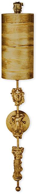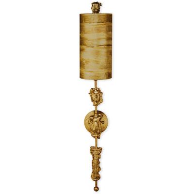Elstead FlambeauFragment Gold 1lt Wall Light .Fragment 1lt wall fitting has burnished gold leaf scultped decorative elements; silhouettes of torso, head and column fragments and a silver cylindrical shade..FBFragment-G1.1 x E27 60W