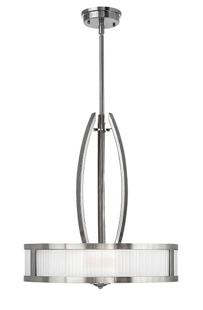 Elstead Hinkely Lighting Merdian 3Lt Pendant.Meridian 3872BN. 3 lt ceiling pendant with 20 glass shade with brushed nickel finish.HKMERIDIANP.3x100w E27