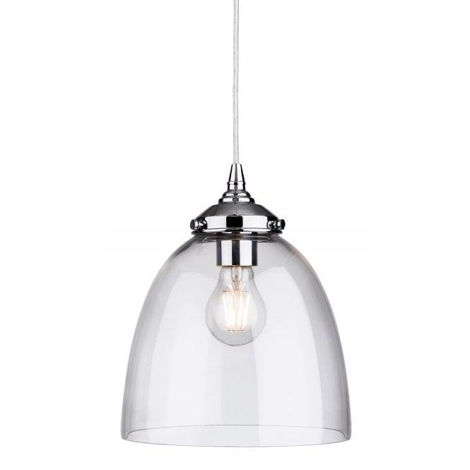 Firstlight Seville single light ceiling pendant with polished chrome fitment and a domed clear glass shade.