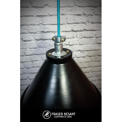 The fitting pictured has been wired with our aqua round fabric cable, we are happy to fit any colour cable you like so please contact us to discuss customizing this light in any way. The fitting will be supplied with 1500mm of cable between the ceiling rose and the top of the shade. Again longer lengths can be fitted, please call us to discuss. These pendants are made to order so please allow 5 days for our workshop to make one up and test it ahead of delivery.