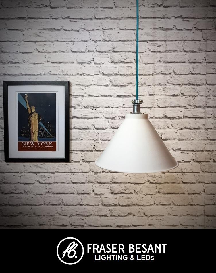 The fitting pictured has been wired with our aqua round fabric cable, we are happy to fit any colour cable you like so please contact us to discuss customizing this light in any way. The fitting will be supplied with 1500mm of cable between the ceiling rose and the top of the shade. Again longer lengths can be fitted, please call us to discuss. These pendants are made to order so please allow 5 days for our workshop to make one up and test it ahead of delivery.