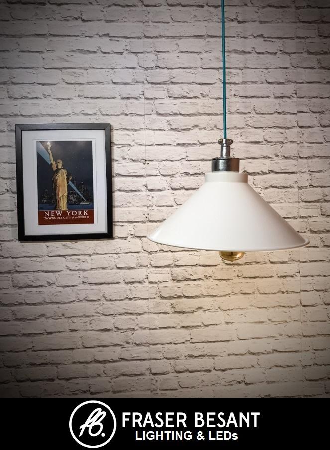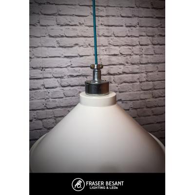 All the parts for this light are British made. The shade itself was made by a family run metal fabricators in the North. It was then powder coated and wired by hand in our Bristol workshop. The design of this pendant would compliment any urban or industrial room set. We have used galvanised wiring accessories to make up the fitting including a metal cord grip and brass lamp holder. The concept we have followed whilst making this range is one of quality and reliability. Back to the old British roots. This is not a mass produced range and the quality of this light is second to none. Even the metal we used to make the shades is 1.5mm steel not your average 1mm thin metal used on many of the mass produced fittings. It is a gorgeous pendant and we are very proud of it.