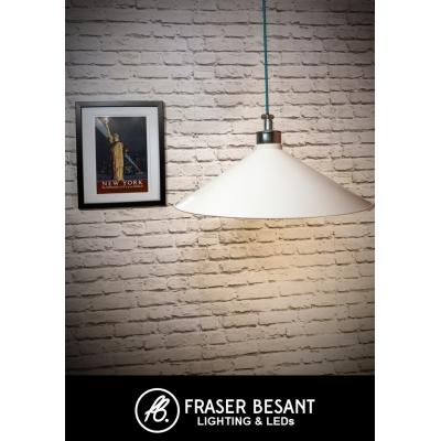 All the parts for this light are British made. The shade itself was made by a family run metal fabricators in the North. It was then powder coated and wired by hand in our Bristol workshop. The design of this pendant would compliment any urban or industrial room set. We have used galvanised wiring accessories to make up the fitting including a metal cord grip and brass lamp holder. The concept we have followed whilst making this range is one of quality and reliability. Back to the old British roots. This is not a mass produced range and the quality of this light is second to none. Even the metal we used to make the shades is 1.5mm steel not your average 1mm thin metal used on many of the mass produced fittings. It is a gorgeous pendant and we are very proud of it.
