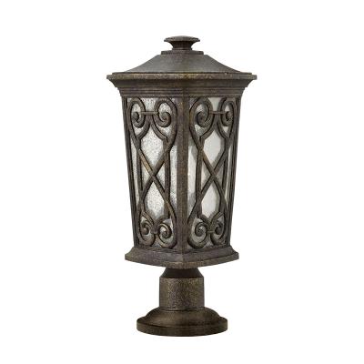 Enzo is inspired by a romantic lantern design. Bleniding beauty and durability, the intricately die cast aluminium construction features graceful scrolls with Old World allure while the rich Autumn finish and clear seedy glass meld timeless elegance.