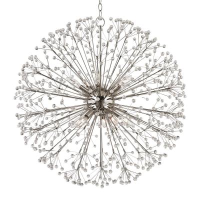 Hudson Valley Dunkirk 10 Light Modern Pendant. The earthly and the extraterrestrial combine in this beautiful, branching family. Faceted crystal spheres bedazzle at the end of every branch, luminously refracting the light. Like a star being born, Dunkirk is at once organic and out of this world. When Sarfatti designed the first chandelier that launched the Sputnik-style craze, it had been fireworks he was trying to emulate. There is something both of the firework exploding and the fixtures Sarfatti inspired in this opulent piece.