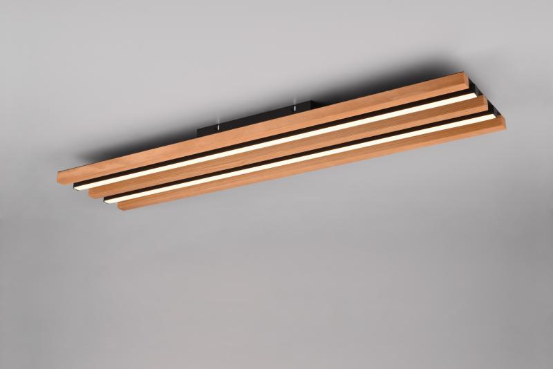 The ceiling light combines timeless elegance with the warmth of natural wood elements, making it a stylish highlight in any living area. The brightness can be adjusted in three stages using a conventional light switch, making it not only visually appealing but also functional. Perfect for a cosy yet modern living atmosphere. Its simple shape and the combination of black matt metal and natural wood make it a versatile decorative element that blends harmoniously into a wide variety of interior styles. The luminaire also features modern LED technology, which is characterised by high light quality and energy efficiency. Compared to conventional halogen light sources, up to 80% of energy costs can be saved. LED light sources also have a long service life, produce less heat and protect the environment.