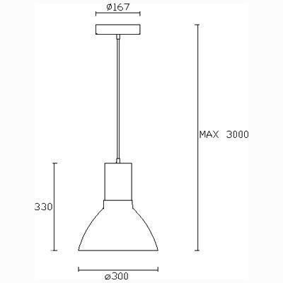 Size: Drop: 3000mm Max, Fitting Height: 330mm, Diameter: 300mm