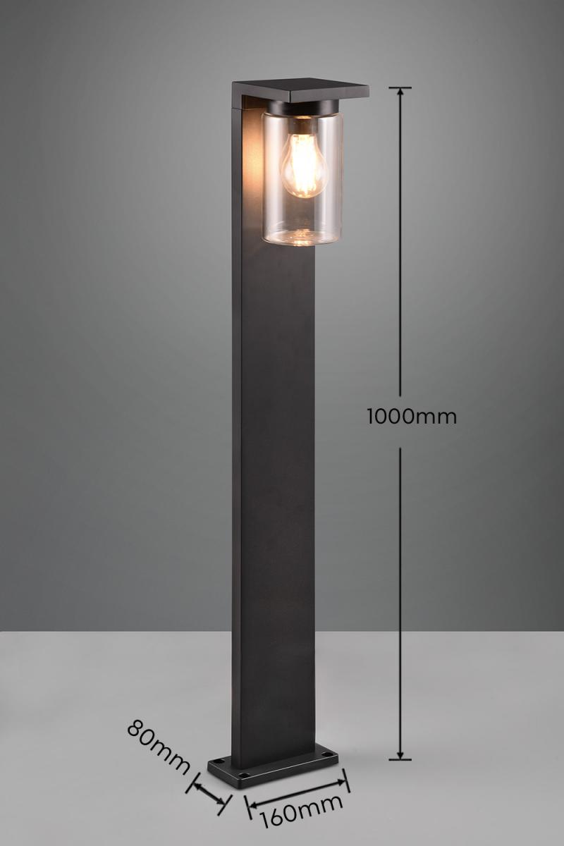 The extraordinary design with a glass shade provides atmospheric light accents and a pleasant atmosphere around your home. The bollard light has a twilight sensor that switches on automatically as darkness falls and can be switched off via an integrated switch if required. Due to the IP44 protection class, the luminaire is particularly weather-resistant. The luminaire is a high-quality eye-catcher in your outdoor area thanks to the elegant design made of glass and black matt die-cast aluminium. For energy-saving lighting, it is recommended to use an LED illuminant. These are an optimal alternative to conventional halogen lamps and stand for a high quality of light and energy savings of up to 80%. In addition, LED lamps help you benefit from a long service life, low heat generation and at the same time protect the environment.