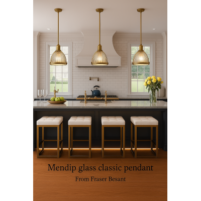 This charming mini-pendant design features authentic details like cast knobs, clear ribbed optic glass and bold strap details. Vintage style bulbs are the ideal companion, reinforcing this pendants versatility and ability to enhance interiors ranging from traditional to industrial to modern farmhouse.