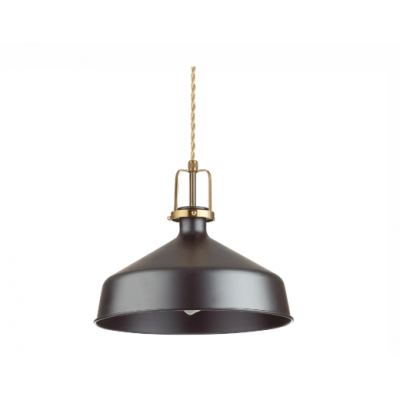Metal frame with matt black varnished ceiling rose and diffusers. Details with satin gold finish. Braided electrical wire coated with fabric. Ø 330 x H min 520 / max 2150 mm E27 max 1 x 42W