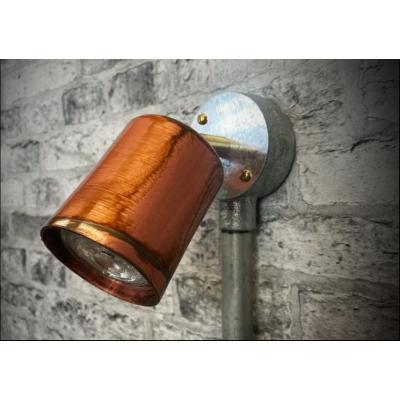 Natural Copper conduit box spotlight fully adjustable. A gorgeous caramelised earthy copper finish, no two come out the same. These are very unique lights with plenty of character. The amber copper finish is ideal in urban and industrial interior designs.