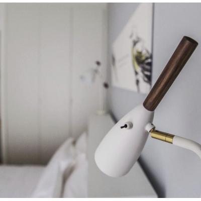 Pure Matte white adjustable reading light ideal as a bedside wall light. Small toggle switch located on the side of the shade. Beautiful walnut wooden detailing. Stylish yet minimalist design. 1 x 7W GU10
