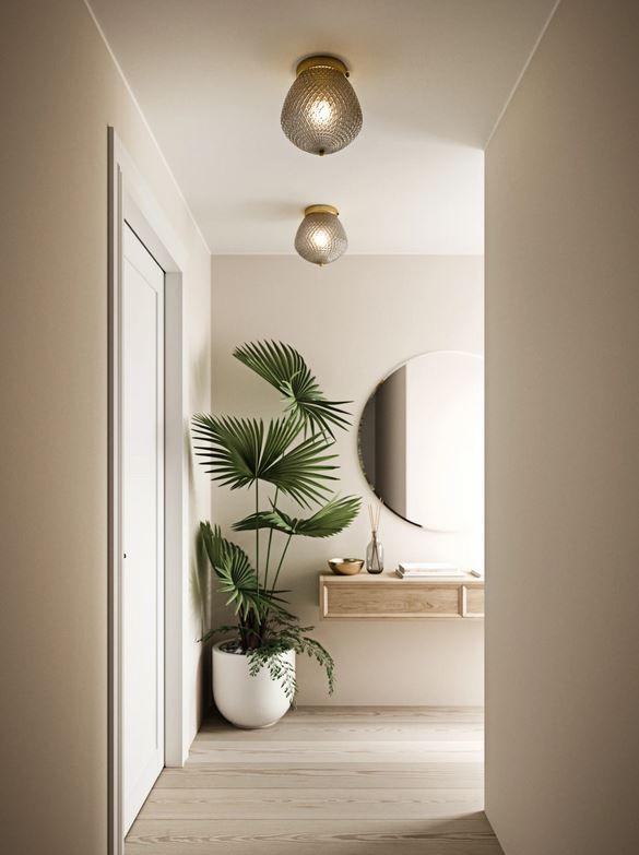 The Nordlux Orbiform Semi-Flush Brass & Glass ceiling fitting has a Glamorous art deco design. A beautiful mix of brass and smoked glass with a Diamond pattern that reflects light in an exciting way, Perfect for the entrance halls.