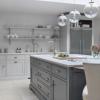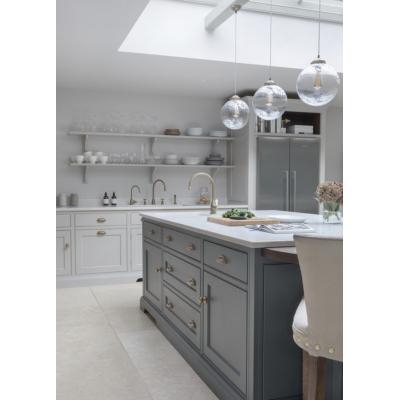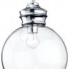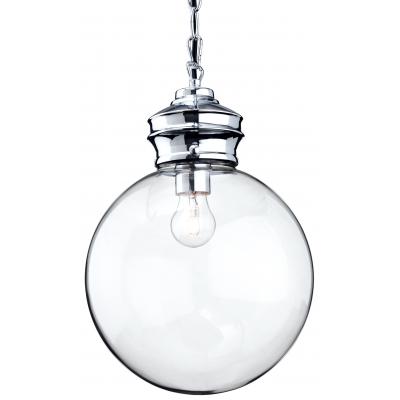 Omar clear glass round pendant with polished chrome detailing. An ideal source of light for use over a kitchen island or family dining table. These clear glass pendants are a great choice of light in open plan kitchen spaces when you don’t want to obstruct the view across the room. We usually recommend the use of a decorative squirrel cage lamp to set off this style of light. The super warm lamp accents the glass and gives a lovely atmospheric amber light.