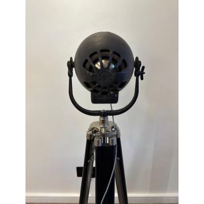 Patt123 genuine vintage stage spot on a black tripod stand. This has been lovingly rewired with the light holding it's original black finish. These iconic stage spots from the 40s and 50s are hard to come by.We have fully rewired the Patt stage light to add a modern E27 lampholder. It’s fitted to an adjustable black wooden tripod and wired up with black & white fabric cable. It’s on display now in our showroom and we have just one available. We simply cannot source these anymore. So grab a piece of history.