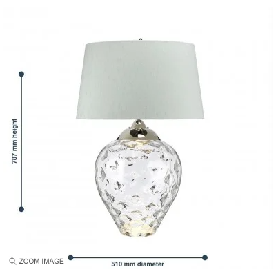 Samara's textured blown glass, classic polished nickel metal-work and beautiful hand-made fabric shades combine to form an arresting and gorgeous table-lamp. Combined with a 4-way switch, this design features independent light sources for the shade and the glass. ( GU10 supplied ) Suitable for all rooms, bedrooms, conservatories, hallways, living rooms & study. 78.7 cm height x 51 cm diameter. Clear cable. Lamp Shade Included. This product is suitable for use with LED bulbs. Switched using 4 Way On/Off Switch. This product is compatible with most domestic smart light bulbs. Always check bulb length against product dimensions to confirm suitability. 60W Max E27 ES (required) & 7W LED GU10 620Lm 3000K (included). Class I - Earthed for your safety.