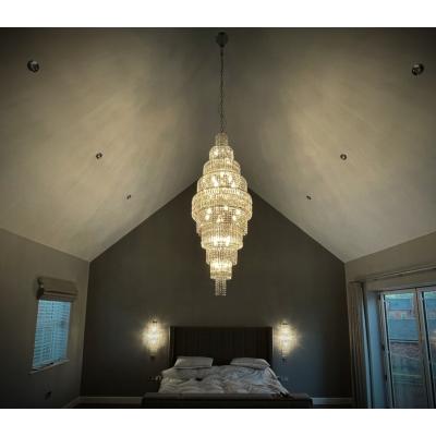 Searchlight 13 light chrome chandelier with clear bevelled glass trimmings. A large statement luxury chandelier light. Ideal in an entranceway or any room with a dramatic high ceiling. 13 x 40 watt Candle E14