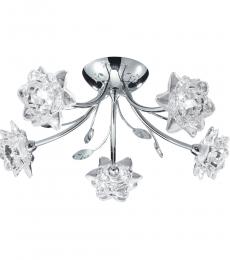 Searchlight 3 light chrome semi-flush fitting white glass crystal leaf . 3 x 40 watt Candle E14