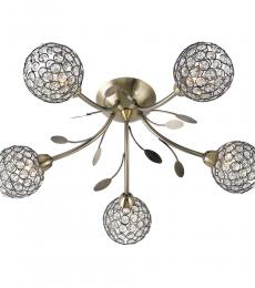 Searchlight 6 light antique brass ceiling flush with sculptured clear glass. 6 x 33 watt Halogen G9