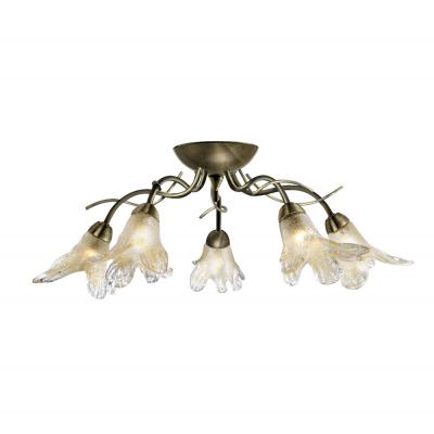 Searchlight 5495-5AB 5 light antique brass semi flush fitting amber petal glass