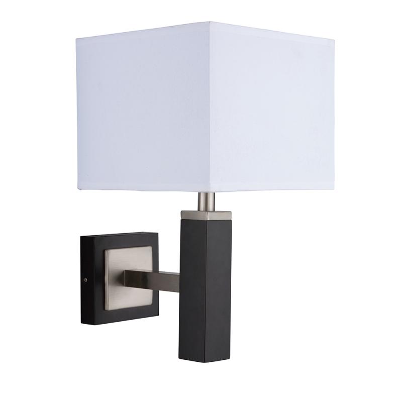 Searchlight 1 light brown wood/satin silver rectangular wall bracket . 1 x 40 watt Candle E14
