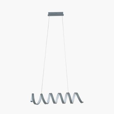 Solaris Grey loop/Spiral feature Pendant. Simple yet elegant spiral LED electrified pendant finished in a soft matt grey finish twisted with the LED light. Within the spiral are integrated LED strips which create a modern twist on a standard electrified pendant. The integrated, non-replaceable LED comes with a 2 year guarantee but has a life span of up to 10 years and as an extra bonus, is also 90% more energy efficient than a standard bulb. Also available in white and with a matching white or grey table lamp.