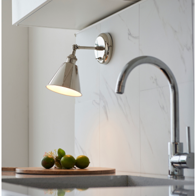 A true timeless classic collection featuring this wall light, in bright nickel plate with adjustable shades; providing targeted lighting for everyday tasks around the home. Bright nickel finished metalwork with knurled details Adjustable head for easy light positioning On/off toggle switch Satin white painted inner shade Dimmable Perfect for use with E14 LED lamps