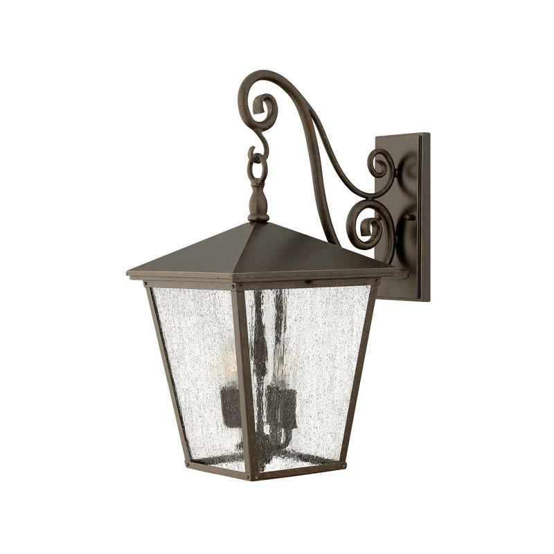 - Large outdoor wall lantern in a regency bronze finish with clear seeded glass panes