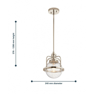 The 1-light convertible pendant/semi flush in Polished Nickel or Natural Brass from the Triocent collection features a Clear Seeded glass globe coupled with industrial-look fasteners and hardware. The look works in both modern and traditional spaces. Boasting an IP44 rating, Triocent is also ideal for Bathroom use. Suitable for bathrooms, hallways, kitchens, porches & utility rooms. Recommended for bathroom zone 2 & 3. 37.6 - 129 cm height x 24 cm diameter. Height adjustable upon installation. IP44 rated. Suitable for bathrooms. This product is suitable for use with LED bulbs and when paired with a dimmable bulb can be dimmed. Height adjustable. This product is compatible with most domestic smart light bulbs. Always check bulb length against product dimensions to confirm suitability. 60W Max E27 ES (required). Class I - Earthed for your safety.