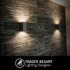 A gorgeous and stylish IP44 minimalist wall light. Ideal for clean rendered walls, metal or wood cladding. This fitting is a great addition to your home. It takes 2 x GU10 lamp which projects a wash of light. It can be easily fitted with an LED lamp which we supply in a choice of colours. Often people use a warm white LED light outside their home as this is more inviting. We have a great range of these light fittings on display in our Bristol showroom and have used them on 100s of our lighting designs, we always get great feedback.