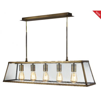 Voyager Antique Brass 5 Light Lantern Bar Light With Clear Glass Panels