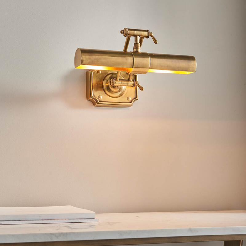 An elaborate 14 inch picture light made from solid brass. Both height and reach are adjustable, meaning you can direct the light exactly to your requirement. Dimmable and compatible with LED lamps
