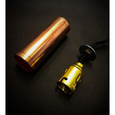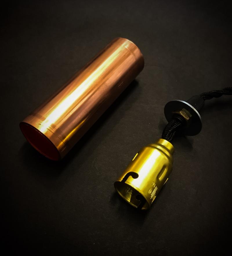 100mm solid copper sleeve and BC holder. Made using an industrial copper pipe we have created this gorgeous natural copper lighting sleeve. We supply this with a brass BC lampholder so a 3 core cable with an earth is required. We also supply it with a metal washer and cord grip. This sits at the top of the sleeve inside and means the cable sits in the centre of the tube. This means it hangs much nicer and balances itself.
