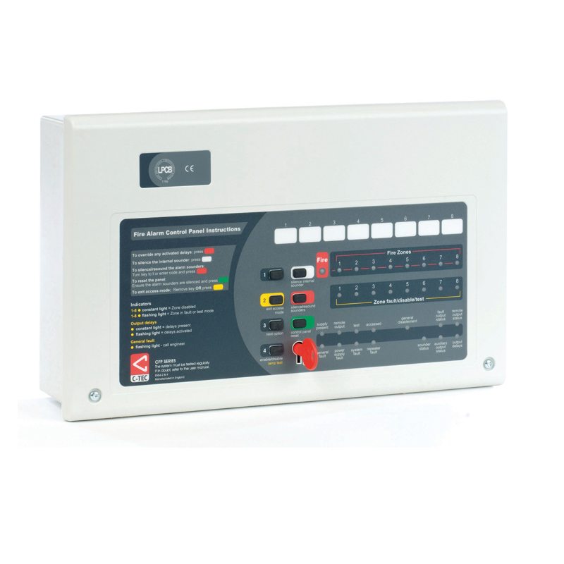 LPCB certified to EN54-2/4, C-TEC's CFP two-wire 4 zone AlarmSense fire panel is designed to work with Apollo's AlarmSense range of detectors, call points, sounders and visual indicators.