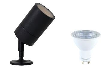 Black Garden Spike Light and GU10 Bundle includes Leto GU10 Spike light and Integral 2700k non dimmable GU10, Options of 5 or 10 from the drop down menu. Big saving on this outdoor lighting bundle.