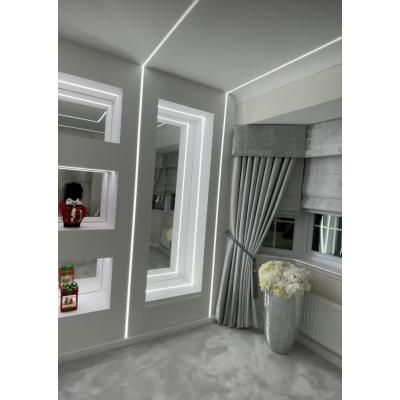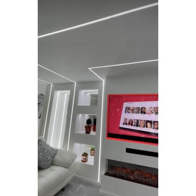 The profile can also be used on plastered walls and ceilings to create linear lighting effects. The L shape trim of the profile makes it easy to fit the profile into plaster and concrete materials, with a seamless finish.