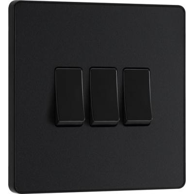 BG Evolve 3gang 2way Matt Black Screwless Light Switch