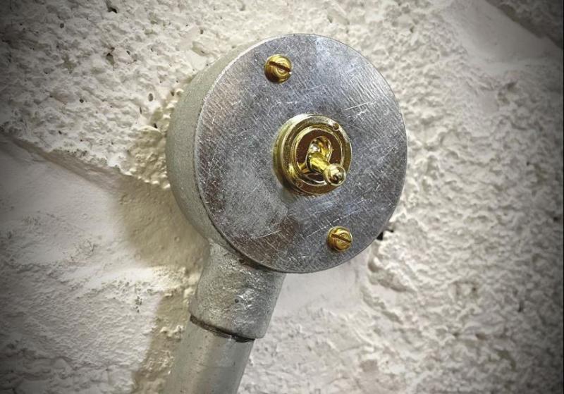 Brass toggle conduit box switch. A retro style toggle switch for lighting fitted to a single conduit metal back box. Ideal for industrial interior designs. This is a 1G 2W switch so you could use 2 of these to control the same light. These would look ideal in a quirky urban bedroom or lounge. These are handmade in our Bristol workshop.