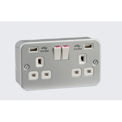 Heavy duty metal clad box. Durable powder coated surface with urea switch. Angled captive terminal for easy installation. Durable, high temperature resistant thermoset aperture with dual USB charging slots 5V DC 2.1A (combined)