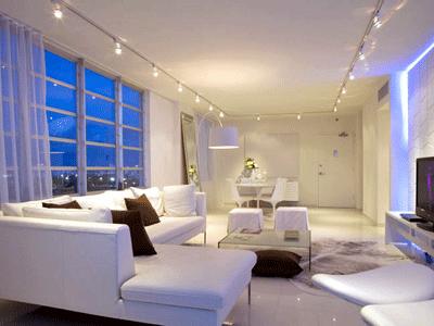 To recreate this look we have used mains adjustable track lighting, we have made a U shape on the ceiling to follow the shape of the room and allow adequate lighting over the seating area and the floor space. The track we have used is very versatile and you can add more spots and move them along the length of the track to add more light to a specific area or feature of the room. The track spots can be fitted with LED lamps and can also be dimmed. Dimming is ideal for lounges and bedrooms.